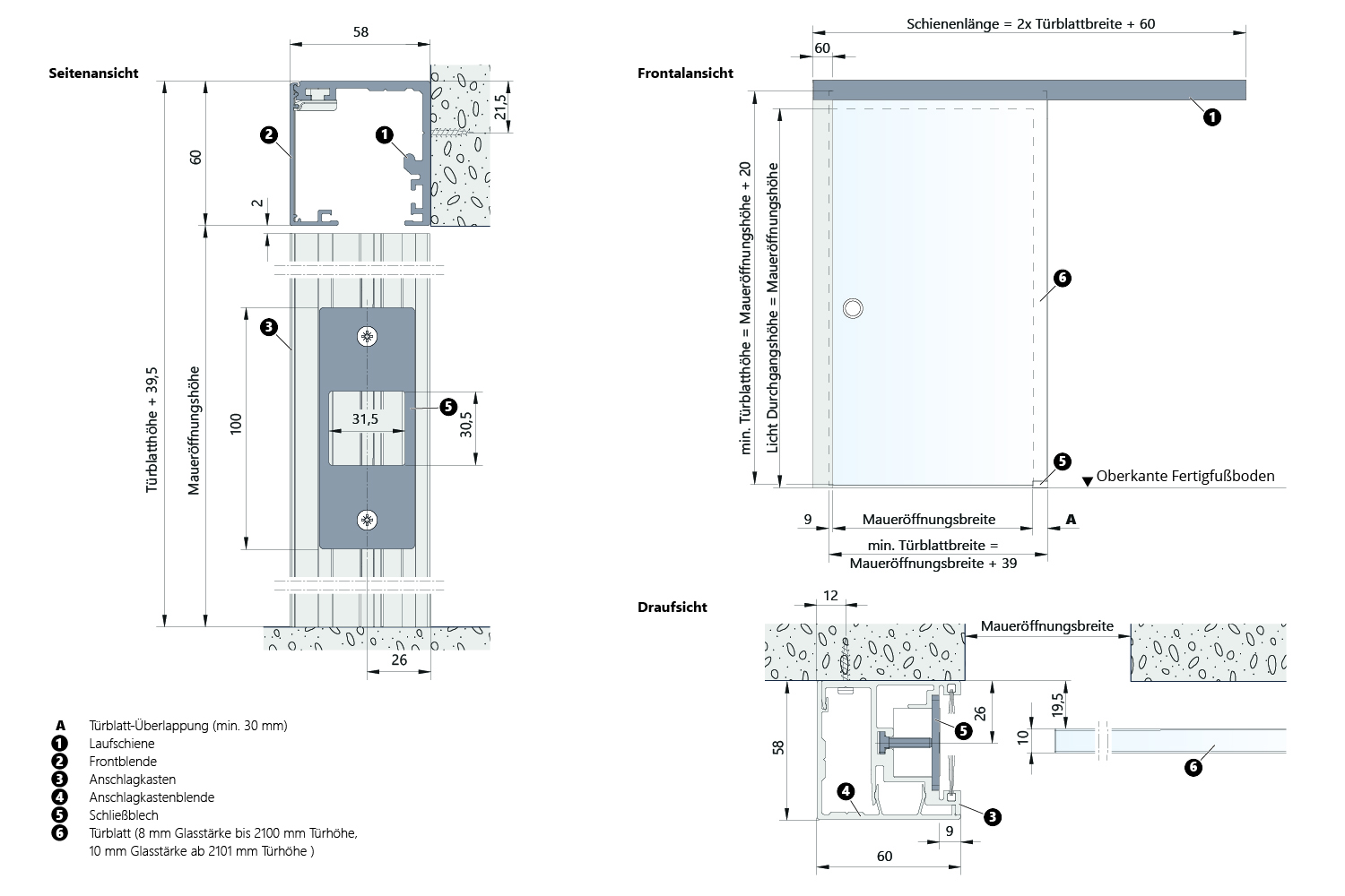 Dieses luxuriöse System ist so konzipiert, dass es perfekt zu Ihrem Traval-Türblatt ergänzt. Die Laufschiene ist in einer eleganten Schwarz-Optik gehalten, die in jedem Raum ein Hingucker ist. Mit einer Höhe von nur 60 mm und einer Tiefe von 58 mm (ohne Distanzprofil) ist die Schiene schlank und diskret und schmiegt sich förmlich an die Wand.